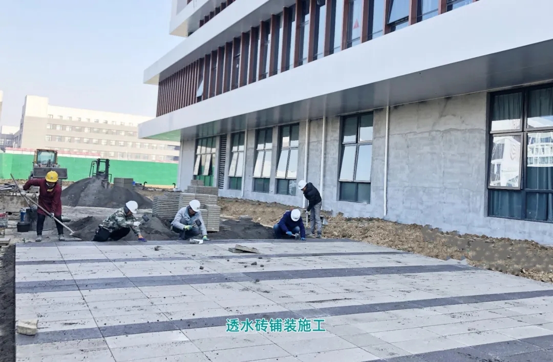 没有退路就是胜利之路。该工程交叉施工影响非常大,导致交工工期极为紧张2021年5月项目部组织人员、机械设备准备进场,但现场土建脚手架仍未拆除,装修单位仍在施工,无工作面,经多次会议协调,直到6月15日部分段落才具备穿插施工条件。没有退路,只能向前,项目部精心统筹安排:进场材料如陶瓷透水砖、植草砖、需要定制加工的不锈钢井盖等,项目部与公司采购部门第一时间组织送样、检验、确认、预订,保证材料提前进场。