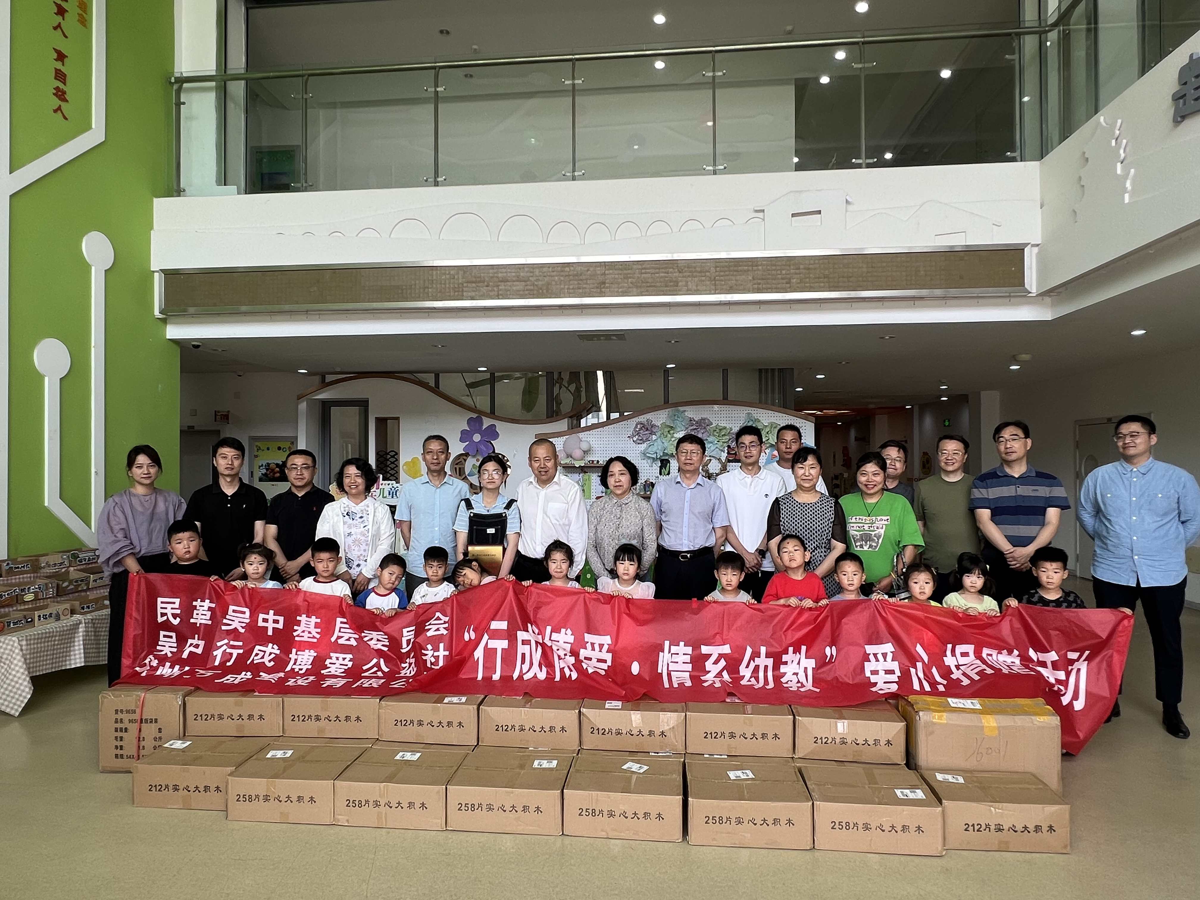 《同心缘行成博爱公益社》向幼儿园捐赠了适合小中大班孩子的木制积木和人工智能玩具,为幼儿的教育成长注入了力量。