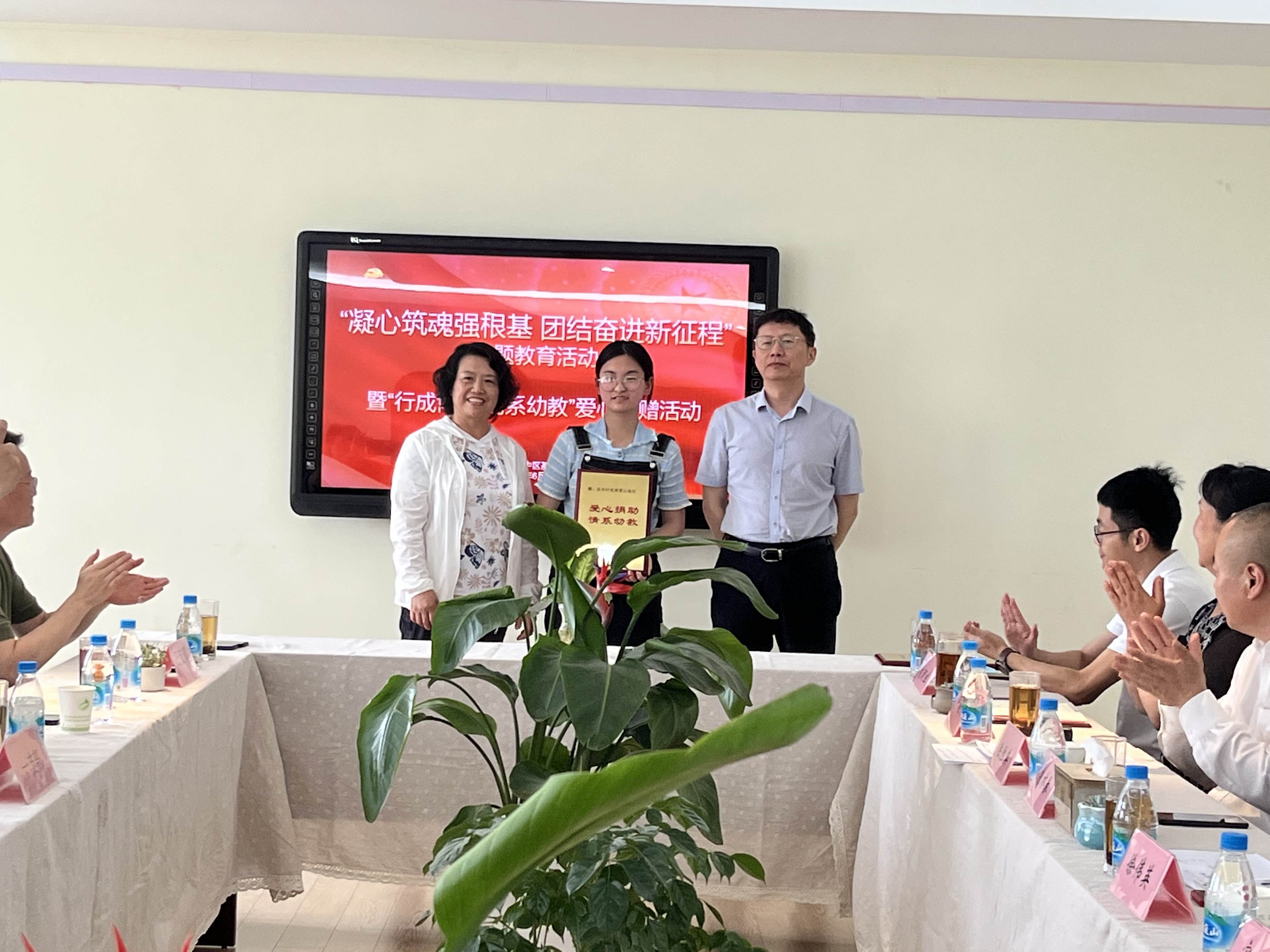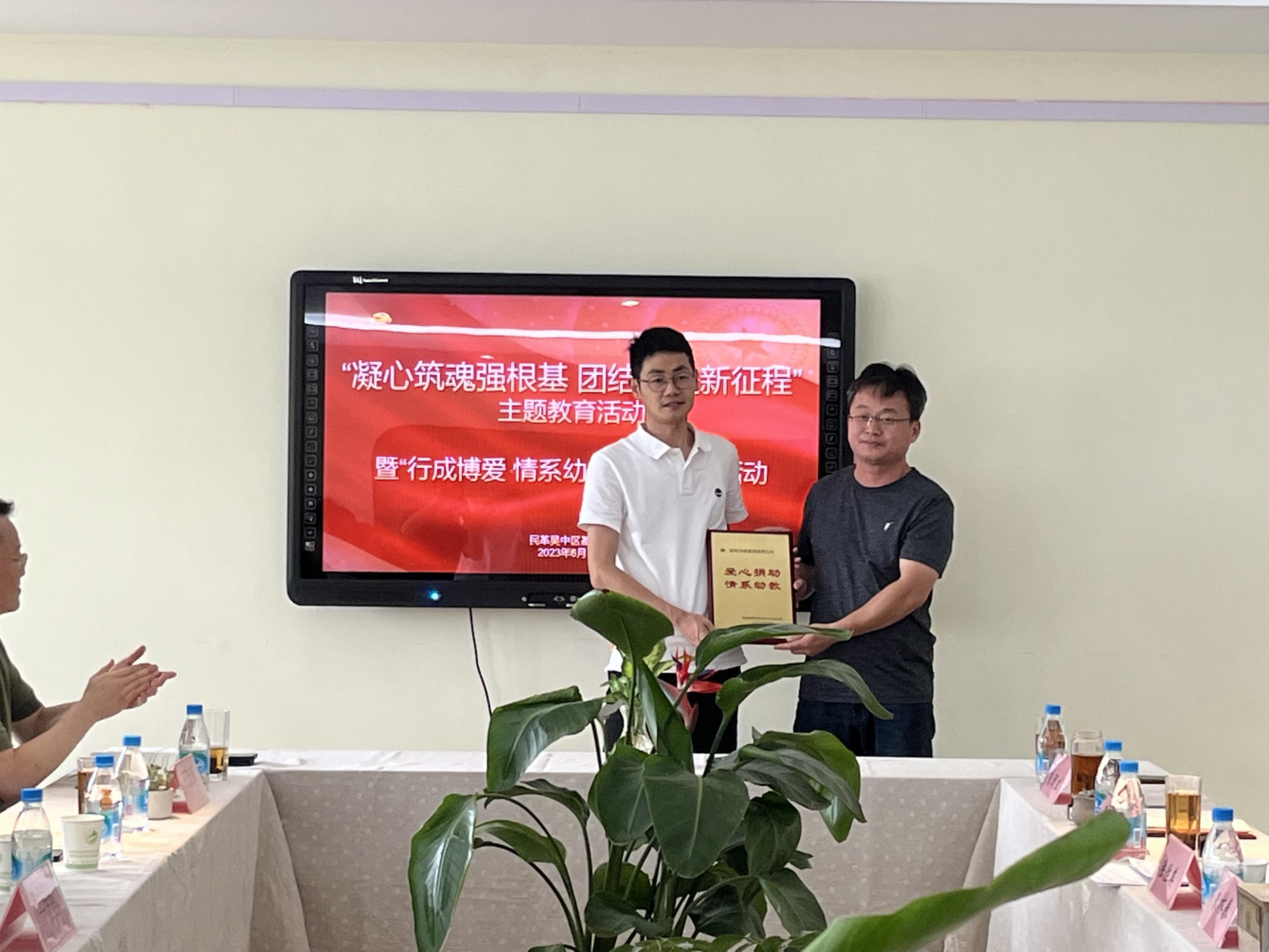 捐赠仪式上,西山中心幼儿园向苏州万成建设有限公司、吴中行成博爱公益社和民革吴中基层委员会三家爱心单位回赠荣誉铜牌。