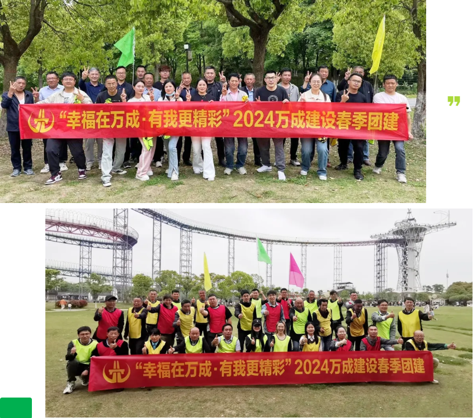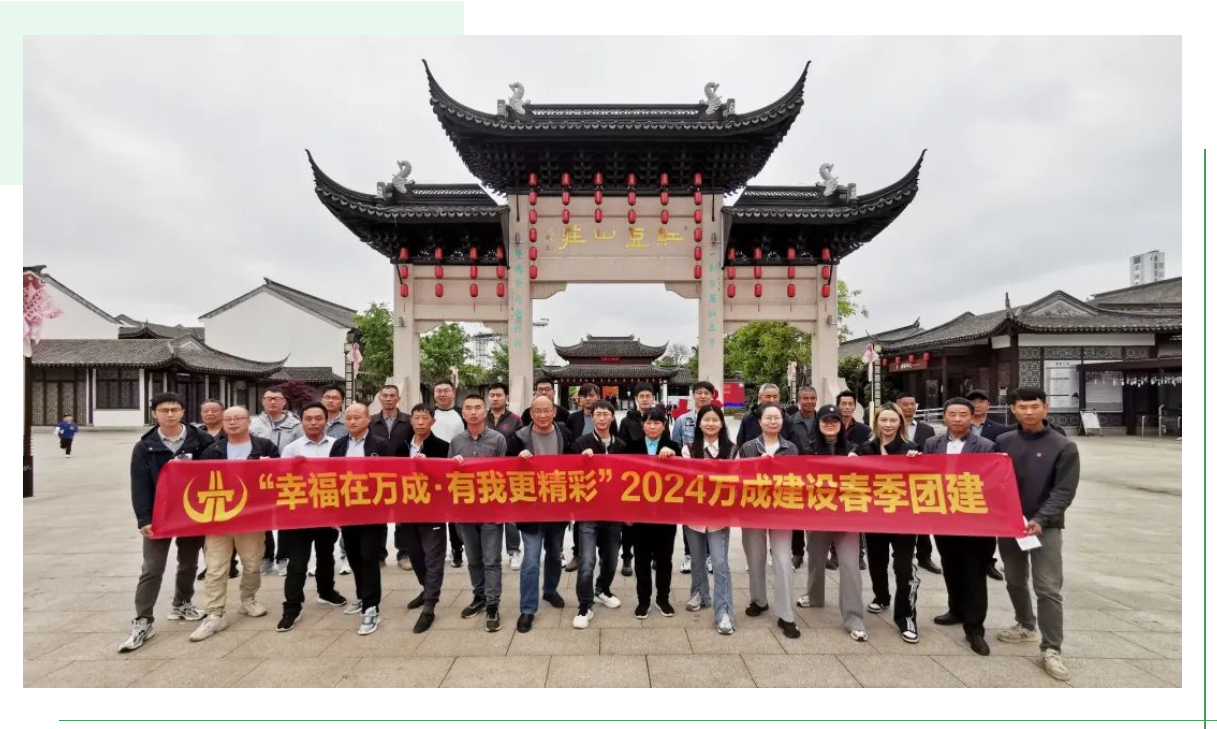 最美人间四月天,不负春光与时行。万成公司全体员工2024春季团建活动日前在常熟古里红豆山庄旅游基地顺利开展。此次活动全体员工先后分两批,以“幸福在万成 有我更精彩”为主题,通过走进春天、亲近自然的方式,释放工作压力,增强团队凝聚力。